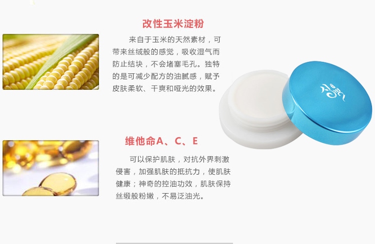 妆前膏加工产品特性:抚平毛孔凹凸现象,令肌肤柔润细腻,晶莹透亮 ——含有直径大小不一的球形粒子,掩盖粗大毛孔,吸收多余油份和抑制粘性分泌物,促进后续粉底妆容的清爽,预防肌肤干燥,保持肌肤柔润状态。含有橄榄油成份,改善肤色不均匀。保护肌肤免受UV伤害,推荐给想使肤色均匀,拥有细致皮肤的人群。使用方法: 请在粉底前使用,用指腹取少量,再均匀涂抹于整个脸部。
